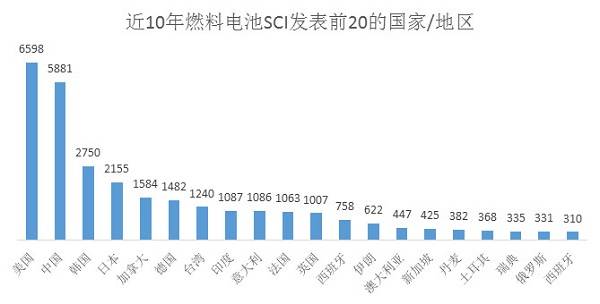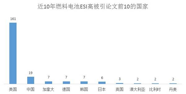 燃料电池领域,美帝无论是从数量还是质量上都遥遥领先,虽然我国在发文章的数量上于美国相差不大,但是在高水平文章的数量上还是有一定差距。值得注意的是,加拿大在燃料电池的开发上也具有比较明显的优势。从研究机构来分析,加拿大国家研究理事会在燃料电池领域的高水平研究产量很高。一方面与其本身丰富的油气资源密切相关,另一方面也侧面反映出加拿大政府以及科研院校对燃料电池研发的重视程度。