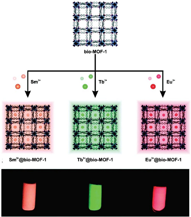 材料发光分为光致发光和电致发光,对于MOF而言更多的研究的是其光致发光(分为荧光和磷光两种)。它的发光主要来源四个方面:配体发光、镧系金属离子发光、电荷迁移发光、客体发光。基于MOF的发光可以实现一系列的应用: