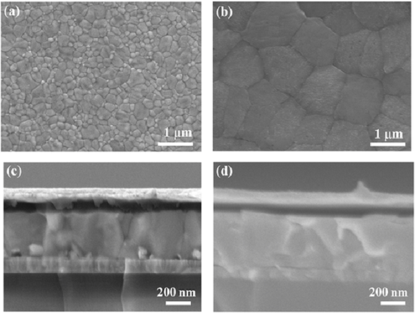 (d) ITO/rGO/PTAA基底上的MAPbI3断面SEM照片
