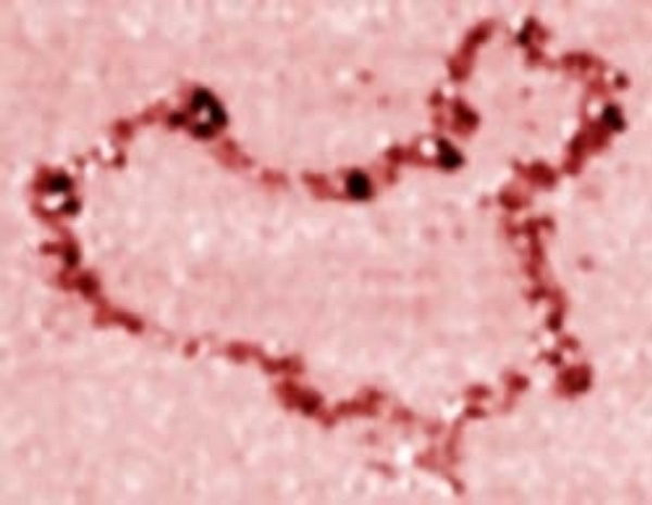 图5 利用纳米加工技术在石墨表面通过搬迁碳原子而绘制出的世界上最小的中国地图
