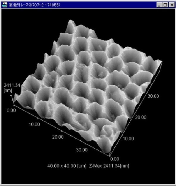 观察被酸腐蚀的牙齿釉质表面。由于釉质的磷灰石结晶的差别,腐蚀出粗糙的蜂窝状表面。在与口腔内中类似的水溶液中观察。(使用培养皿型的液体池)