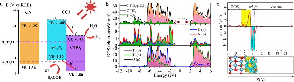 a) C-TiO2/g-C3N4异质结光催化剂的反应机理;