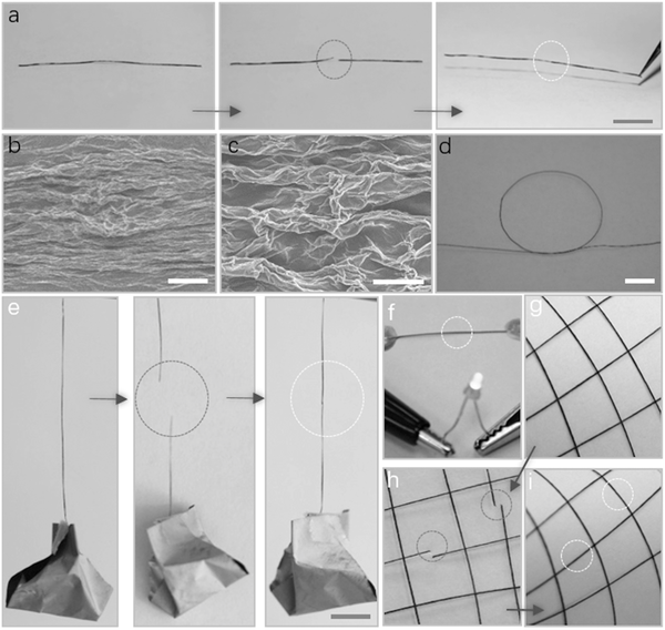 g-i. GO纤维在初始态、破裂和自愈合状态的照片。