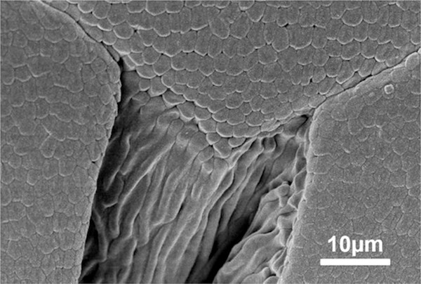 图1. 树蛙脚垫的上皮细胞的扫描电镜图
