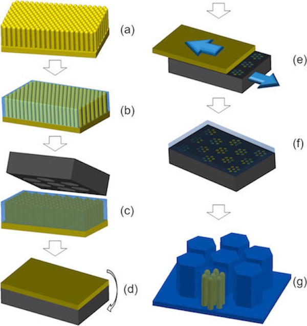 a)利用阳极氧化铝得到垂直的PS纳米棒阵列;