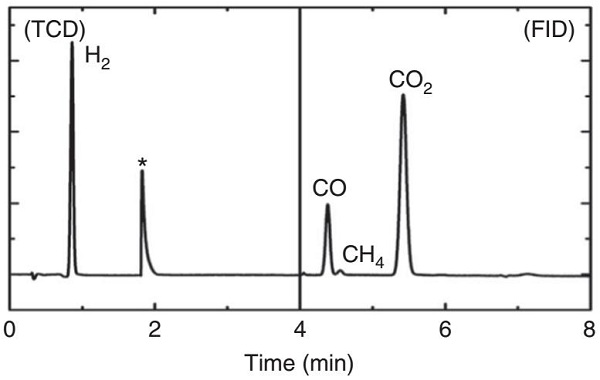 ★代表注射器转换阀带来的气压波动导致的仪器干扰。TCD是热传导式探测器,FID是火焰离子化探测器。