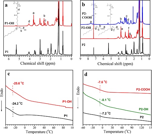 (b)P2、P2-OH、P2-COOH的1H-NMR谱图;