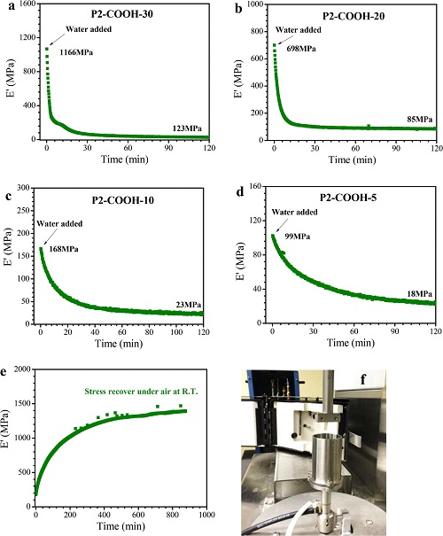 (e)P2-COOH-30室温风干过程中储能模量随时间的变化;
