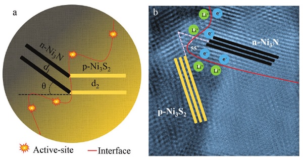 近日,中山大学的童叶翔教授、宋树芹副教授和Muhammad-Sadeeq Balogun博士(通讯作者)等在Adv. Energy Mater.上发表了题为“Phase Boundary Derived Pseudocapacitance Enhanced Nickel-Based Composites for Electrochemical Energy Storage Devices”的研究论文,报道了相边界引发的赝电容增强镍基复合材料电化学储能器件的最新研究进展。研究人员通过退火和硫化处理制备得到了氮化镍@硫化镍(Ni3N@Ni3S2)纳米片复合材料。研究发现:Ni3N和Ni3S2之间的相边界是导致复合材料高储锂容量的关键因素。Ni3N较为出色的赝电容特性和Ni3S2较为理想的扩散控制型容量形成协同效应,共同提升了复合材料的电化学储能性能。通过界面失配和赝电容特性和结合,研究人员为未来高性能电化学储能器件的设计提供了新的思路参考。