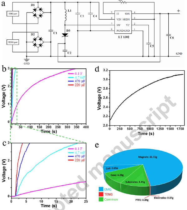 d. 发电机连接在7mF的超级电容上为无线传感器供电的电压曲线