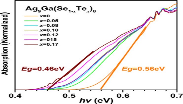 图1 室温下Ag9Ga(Se1-xTex)6的归一化光吸收与光子能量的关系
