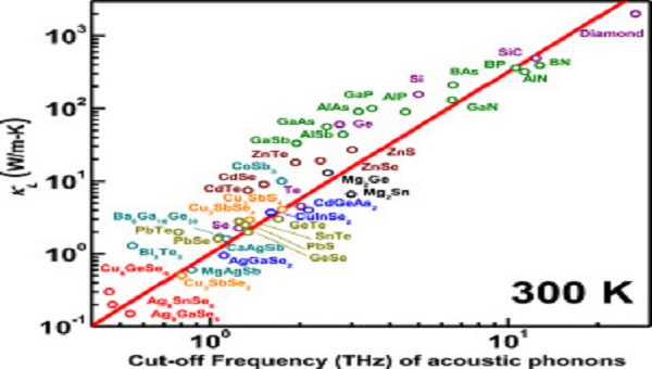 本研究提出声学支截止频率设计材料晶格热导率的观点,不仅可以实现快速评估材料晶格热导率,而且为新型热电材料、保温材料及高热导率材料等热功能材料的研究和设计开发提供了新思路。