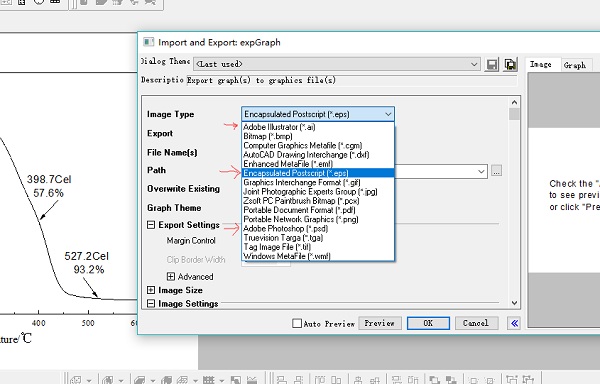 图1-6 Origin绘制的图形导出为对应的Ai格式和Ps格式(红色箭头)