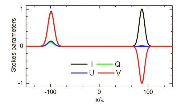 最近,激光等离子体实验室的翁苏明特别研究员和盛政明教授等人发现了法拉第效应的一种极端表现形式:线偏振超短激光脉冲在强磁化等离子体中沿磁场方向传播时可逐渐分裂成两个圆偏振激光脉冲,其中左旋圆偏振脉冲在前,右旋圆偏振脉冲紧随其后。研究表明在强磁化等离子体中,左旋与右旋圆偏振光不仅具有不同的相速度,同时还具有不同的群速度。前者可导致线偏光的偏振方向发生旋转;而后者则直接导致构成线偏光的左旋光脉冲与右旋光脉冲在时空中的分离。