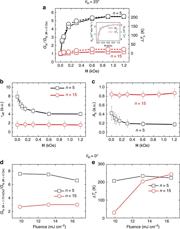 (d) Gls / Gls(H = 0)和∆Ts注量依赖性。