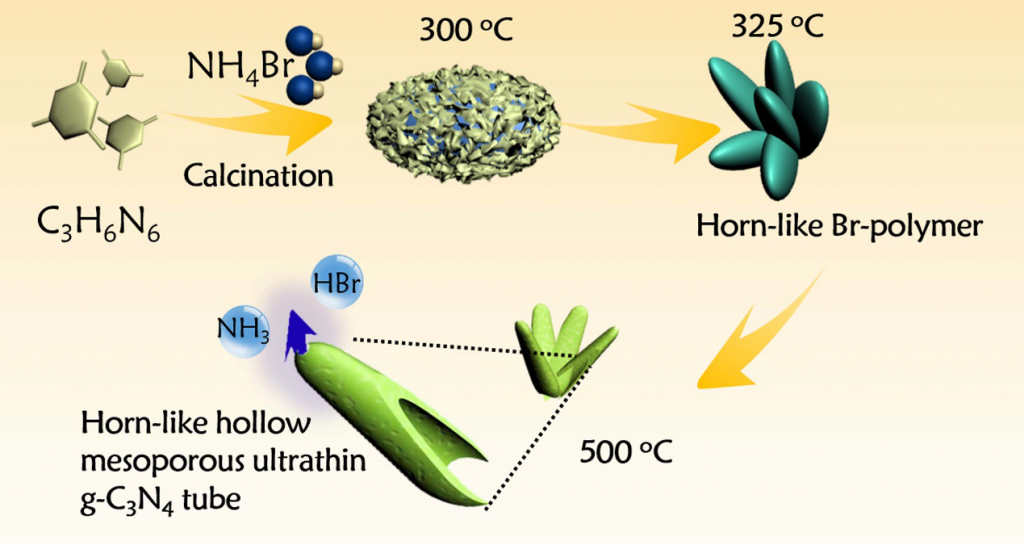 文献链接:Intermediate-Mediated Strategy to Horn-like Hollow Mesoporous Ultrathin g-C3N4 Tube with Spatial Anisotropic Charge Separation for Superior Photocatalytic H2 Evolution. Nano Energy. 2017, DOI: 10.1016/j.nanoen.2017.10.031