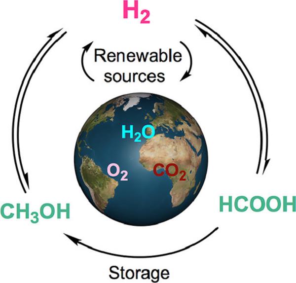 H2是一种环保、无污染的可再生能源,但其低密度影响了其有效应用。因此,欲实现氢气经济,高效的处理和存储方法是亟待解决的关键因素。基于液体的存储系统,特别是可以从CO2或其他可再生材料制备的甲酸和醇,是极具吸引力的H2载体,既可用于固定能量存储单元(如加氢站),亦可作为运输燃料直接使用。然而,欲使能源基础设施发生变化,首先需要具备从甲酸和醇释放出H2以及从CO2和H2再生甲酸和醇的高效催化过程。洛桑联邦理工学院的GáborLaurenczy和罗斯托克大学的Matthias Beller(共同通讯作者)等综述了关键反应即CO2加氢得甲酸和醇及其反向脱氢反应的均相催化中的前沿进展,其中从可再生原料制得的高级醇脱氢以及有关反应机理的信息也有提及。作者分析了均相催化剂的关键结构特点以及在许多体系必需的助剂的作用,关注了可持续催化过程的最新进展,特别是无添加剂和基于地球上充足的金属离子的催化过程。