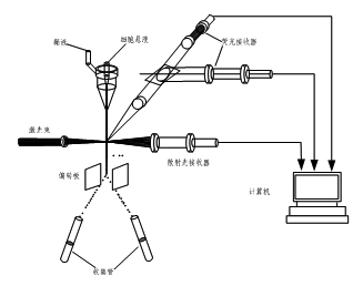图2为流式细胞仪基本结构。它主要有四部分组成:流动室和液流系统;光源与光学系统、信号收集与信号转换系统、计算机与分析系统。具有分选功能的流式细胞仪还包括分选系统。将待测细胞荧光染色后制成单细胞悬液,在鞘液的包被下单行排列,依次通过流动室检测区域。以激光作为激发光源,垂直照射检测区域的样品流,被荧光染色的细胞在其照射下,产生散射光和激发荧光,它们同时被前向光电二极管和侧向90°方向的光电倍增管接收。前向小角度的光散射信号(forward scatter,FSC)反映了细胞体积的大小;侧向90°方向的光散射信号(side scatter,SSC)反映了细胞内颗粒的复杂情况。激发荧光信号代表了所标记的被测细胞内部颗粒的信息。这些光信号转化成电信号,被传送到计算机,经A/D 转换器传输到微机处理器形成数据文件,保存到计算机上,以备脱机后的数据处理和分析。细胞的分选是将待测液滴充以正负不同的电荷,让其在高压电场的作用下偏转,落入不同的收集容器中,从而实现细胞的分离。