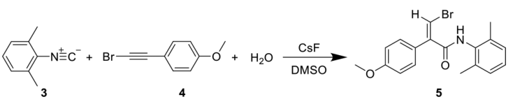 水,作为自然界中廉价易得的资源,在化学反应中一般作为副产物而被人所知。而水参与的有机和聚合反应报道较少。鉴于催化体系的脆弱性和聚合物的溶解性,目前将水作为一种单体用来合成高分子依然面临着巨大的挑战。本文中,研究人员面对这一挑战,开发了一条利用水和异腈及溴代炔的聚合反应路线。在温和的反应条件下,获得了具有高分子量(高达41 700)和高立构规整性(Z-异构体比例高于80%)的产物,产率高达98.1%。所得聚合物具有良好的溶解性、热稳定性和较高的折射率。通过设计单体向聚合物中引入四苯基乙烯后,聚合物显示出独特的聚集增强荧光(AEE)现象。此项工作不仅首次实现了水作为单体之一的聚合,同时为聚酰胺类化合物的合成开辟了一条新的道路。另外,所得聚合物可以通过多条简单的路径进一步后修饰,为其功能化提供了一个广阔的平台。