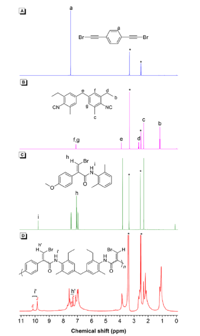 A 双异腈单体(1a)。 B 双溴代炔类单体(2a)。 C PI。