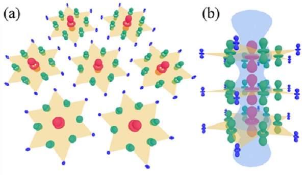 每个黄色六角星代表一个“大卫”星团簇,红绿蓝三色都对应Ta-5d3z2-r2轨道。