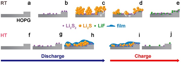 e) Li2S2和LiF在室温下循环后的积累;