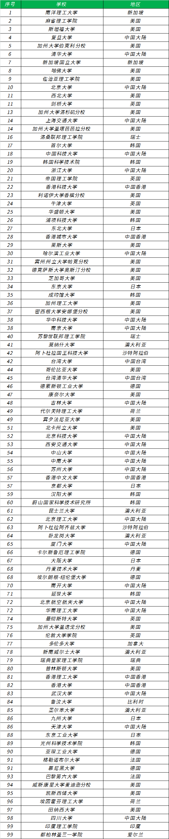 USNEWS最新世界大学排名公布 材料科学复旦清华北大进入十强HTH登陆入口网页 2017-10-25业界11.09K日前,USNEWS公布了2018年全球高校排名。材料牛编辑整理了其中材料科学类全球大学排名。 同往年一样,材料科学共计排出了400所高校。进入榜单的高校中,大陆高校78所,比去年多10所。来自香港5所。来自台湾8所。 以下是TOP100的名单 中国大陆进入榜单的高校如下 更多排名请见:Best Global Universities Rankings 材料牛编辑整理。 未经允许不得转载:材料牛 » USNEWS最新世界大学排名公布 材料科学复旦清华北大进入十强标签排名