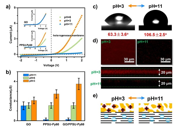 图 4. 异质膜ph响应离子门控性能