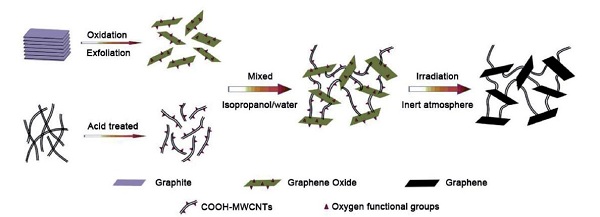 紫外线照射产生的水合电子将GO还原为rGO。