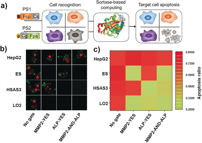 图3 SrtA逻辑门装置实现癌症细胞识别和特异性调控细胞凋亡
