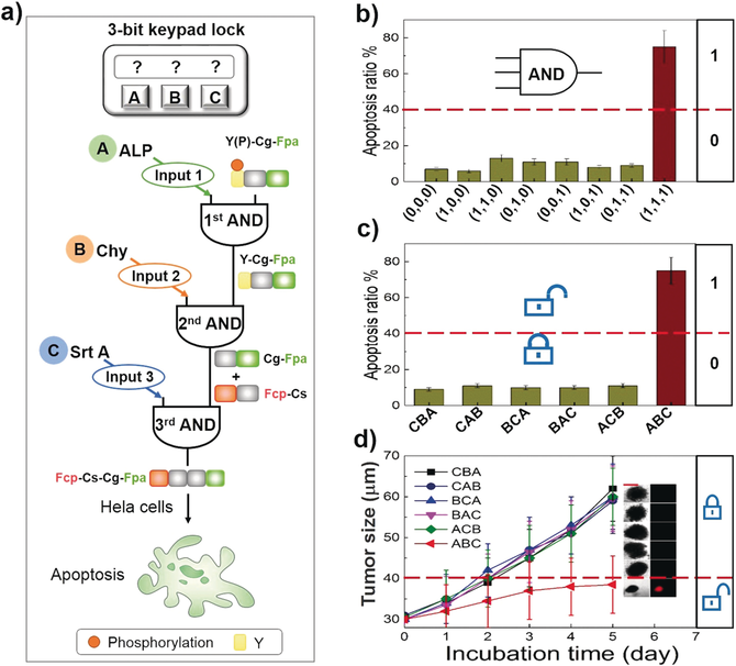 该工作首次构建了一种通用型、多功能模块化的多肽逻辑系统,利用转肽酶A构建多肽逻辑门实现细胞内功能的相互作用。通过模块化的设计,明显增强了多肽电路的复杂性和功能性,且这种概念验证设备实现了细胞的识别和目标细胞的杀伤。这一策略为多肽生物计算系统的纳米器件、细胞编程、疾病诊断和治疗开辟了新的道路。