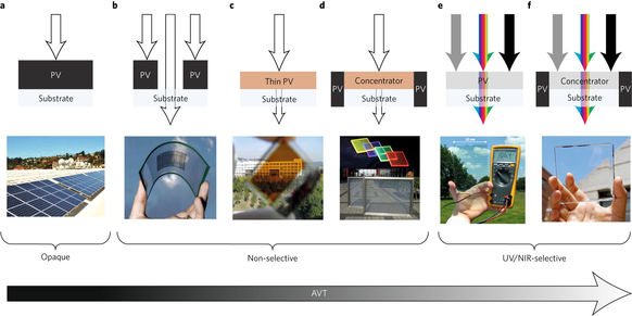太阳能为我们日益增长的能源需求提供可行的解决方案,近十年来,在屋顶和太阳能发电厂所采用的常规光伏技术发展迅速,前景十分广阔。近日,来自密西根州立大学的Richard R. Lunt(通讯作者)等人 概述了在不同程度可见光透明度下太阳能电池的进展。新型太阳能电池可以选择性地吸收紫外光和近红外光,使得建筑环境的许多表面能够转变为太阳能收集阵列,而不会影响到其功能或美学。作者讨论了透明光伏特性的必要因素,并概述了在建筑物、窗户、电子设备显示器和汽车上广泛采用的要求。