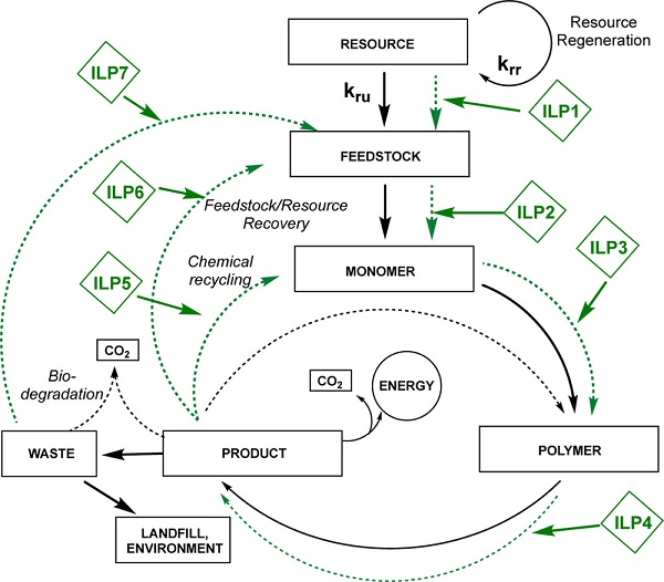 以可持续替代品来取代当前的石油基塑料是现代社会所面临的艰巨挑战,催化剂为促进可持续聚合物的研发提供了有利的工具。近日,来自斯坦福大学的Robert M. Waymouth(通讯作者)等人概述了可持续聚合物的合成方式以及使用期限选择的关键标准。可持续聚合物定义为一种源自可再生原料并呈现闭环生命周期的材料,脂肪族聚酯和聚碳酸酯由于其可再生性和优异的生物降解性可作为这类材料。另外,作者还介绍了“创新杠杆点”,用来描述新的科学和催化技术可能降低在系统级分析中实现闭环生命周期的技术障碍。