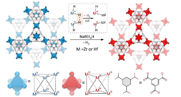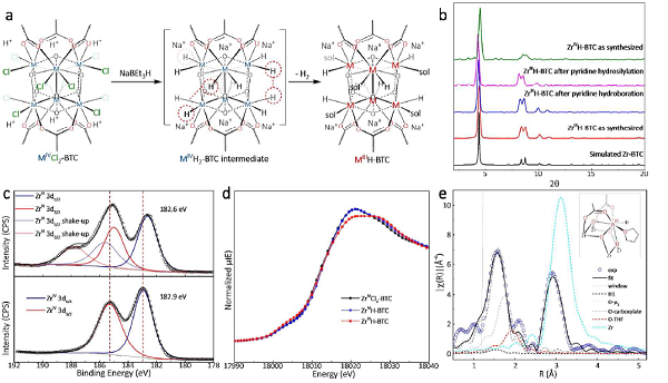 (a)通过ZrIVCl2-BTC的氯化物/氢化物分解,以及随后H2的双金属还原消除合成ZrIIIH-BTC