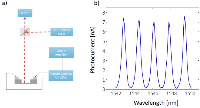 (b). 谐振腔增强SLG/Si肖特基器件的光谱响应曲线。