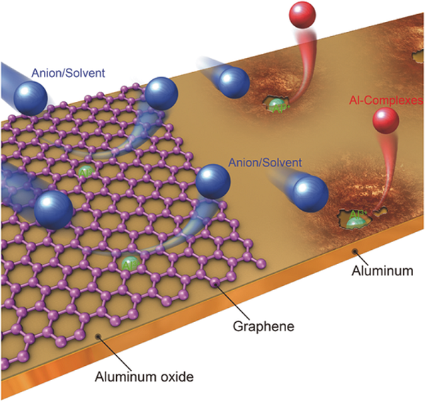 图1.石墨烯包覆铝箔集流体的抗电化学腐蚀的示意图