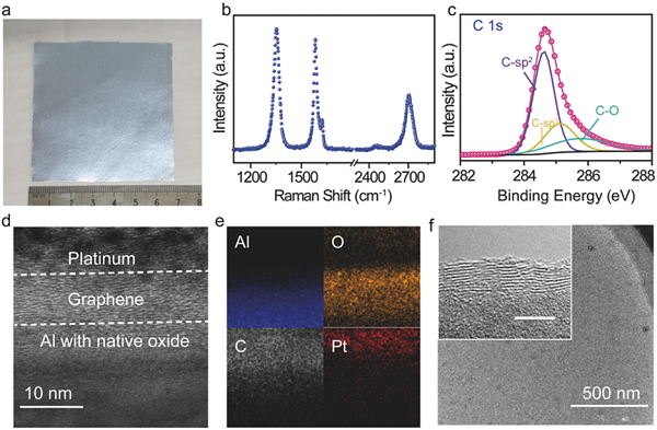 图2. 通过PECVD法制备石墨烯包覆铝箔的合成与表征