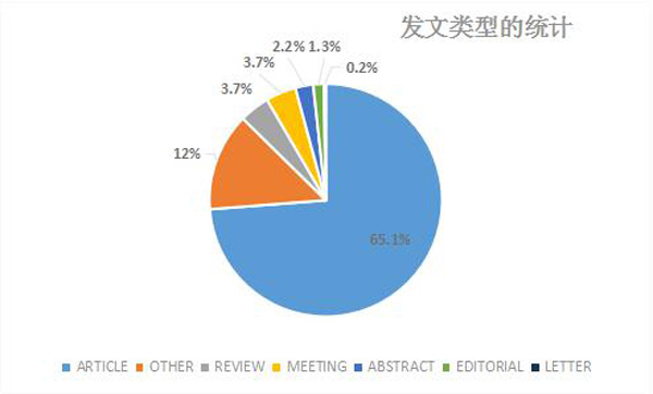 张希教授从1997年开始到2017年这二十年间发表超过百篇文章,其中包括论文、综述、专著等多种形式文章,下图清晰地介绍了张希教授的发文类型及各种类型所占比例。