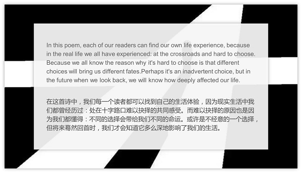 此诗的大背景是讲述诗人在黄色树林中面对不同道路的选择。