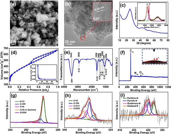 (g,h,i)MF-800-4的高分辨XPS谱C 1s,O 1s和N 1s。