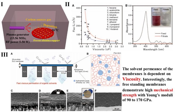 图5. (I) 纳米通道GO膜制备过程,(II) 纳米通道GO微观膜结构 (III) 表面涂覆NSC-GO膜的压力响应