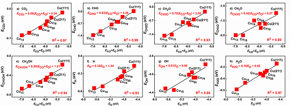 图2.表示所涉及的物种的吸附能量之间的线性比例关系