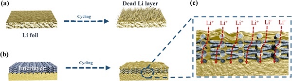 在过去几十年里,锂金属电池在便携式电子器件、电动汽车和大型能源储存站有许多应用。下一代Li基电池,如Li-S、Li-空气和固态锂电池受到了许多关注。在所有的阳极候选者中,由于锂金属阳极独特的高比容量、低电位和轻质量,被认为是下一代锂金属电池最有前景的候选者之一。然而,由于安全问题,Li金属阳极没有进一步被应用在商业电池中。Li金属阳极的安全问题是由于在电化学镀层/剥离过程中,Li枝晶生长引起的。Li金属阳极的主要挑战有下面三点:(1)在电化学镀层/剥离过程中,Li枝晶生长;(2)Li金属和有机电解液之间形成不稳定的固态电解液界面层;(3)Li金属电极的无限体积变化。2012年,Manthiram组发明作为Li-S电池阴极和隔膜之间的夹层多孔炭纸,提高了活性材料利用率和容量保持率。随后,证明了各种碳纤维基夹层在Li-S电池中可以保护Li金属阳极。然而,Li镀层/剥离的详细电化学性能没有被研究,尤其在锂金属阳极上使用炭夹层。因此,研究人员通过引入炭纸作为夹层,实现长寿命和无枝晶Li金属阳极。