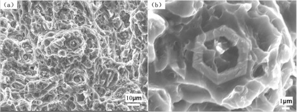 图6 挤压态Mg-6Y-2Zn-0.3Sn合金断口形貌的SEM图像