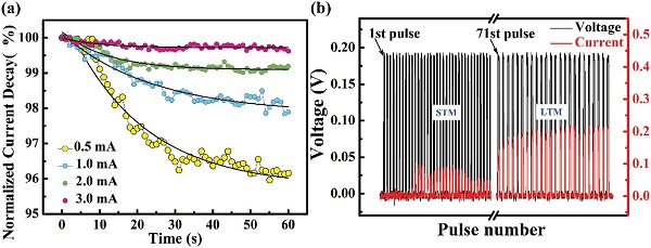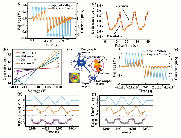 传统的数字电脑在计算过程中要经历提取、解码、执行命令等复杂过程,不可避免地遭遇冯·诺依曼瓶颈,因此构筑新型的计算结构十分重要。大脑基于储存和计算先天性的融合,可以高效地处理复杂的任务,因此仿神经的电子突触具有构建高效脑启发计算系统的潜力。忆阻器是基于生物突触原则设计的,是可以实现储存和计算的人工突触,被认为是突破传统冯·诺依曼瓶颈的关键器件,然而传统的忆阻器难以连续适应电导的变化和忠实地模拟生物突触的功能。因此,新型高性能记忆电阻的制备至关重要。