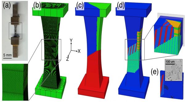 NiTi形状记忆合金中析出、相界、晶界和夹杂物等是多尺度约束的来源,会影响形状记忆合金的力学响应。文章采用3D原位技术,对超弹性NiTi单晶在拉伸测试中进行微观结构变形和演变的表征,并通过远场高能X射线衍射显微镜观察,结合微观结构、变形、应力数据进行局部应力状态的模拟,加深了约束对非弹性变形影响的理解。文章中提出的3D实验-模型相结合的方法,还可以用于研究其他非弹性变形材料(如钛合金、钢和镁合金等)中约束对其变形的影响。