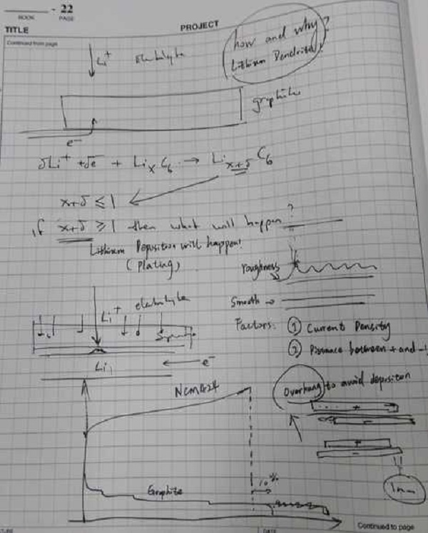 另外,工业上也常使用Overhang的方法来减少锂的沉积,就是将负极做的比正极大一些,就像第一张图中Jeff画的那样(第一张图中右下角)。同时,在选择cell电位范围的时候,要尽量避免多余的石墨容量,以免造成给石墨带去多余的锂量。