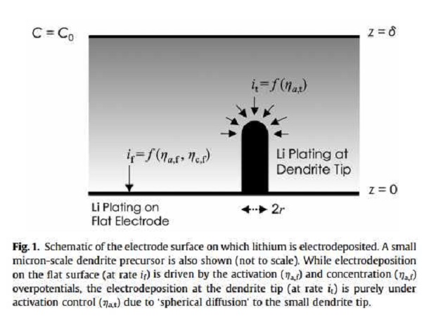 对于题主所问的锂枝晶是如何形成的,这个涉及到成核动力学方面的知识,而在这方面J.Newman绝对是大牛,他建立的这个模型也被人认可:(虽然不完善)