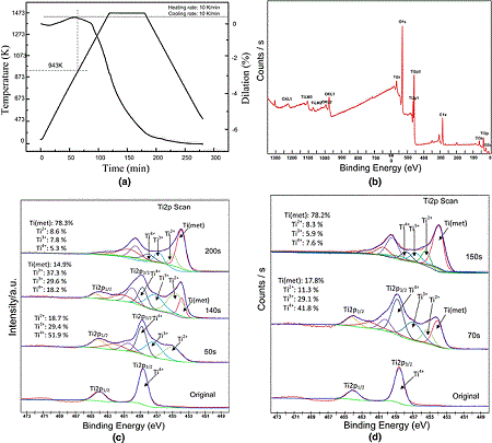 图1. Ti粉末压块的膨胀曲线和XPS测量结果