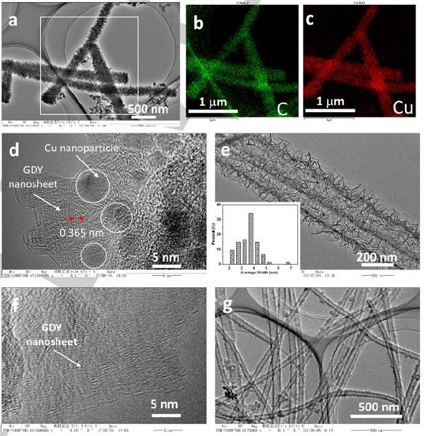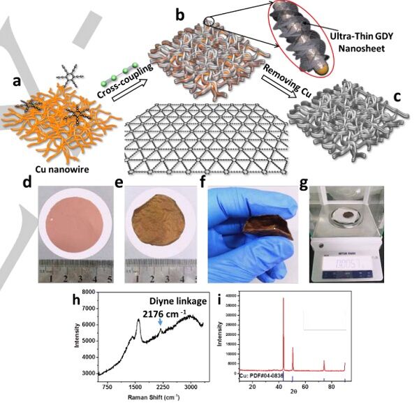 a-c)铜纳米线上原位生长石墨炔过程示意图